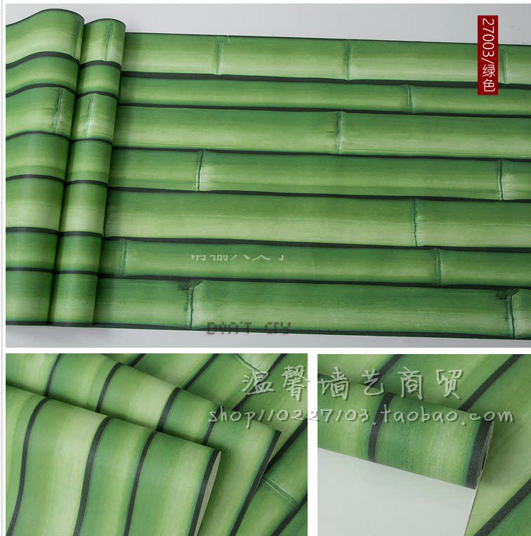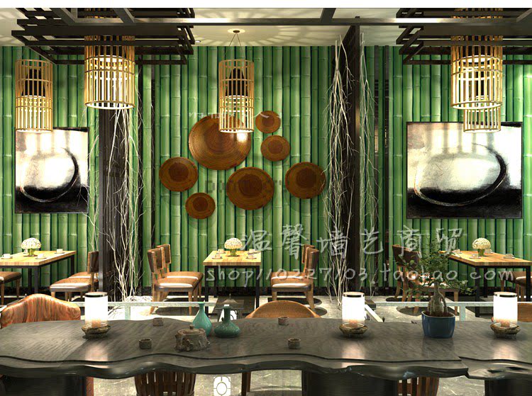 Green bamboo wallpaper wallpaper self-adhesive Chinese shop 3D stereo decoration dining room hotel hotel pastoral renovation sticker