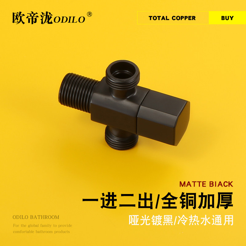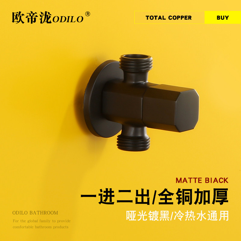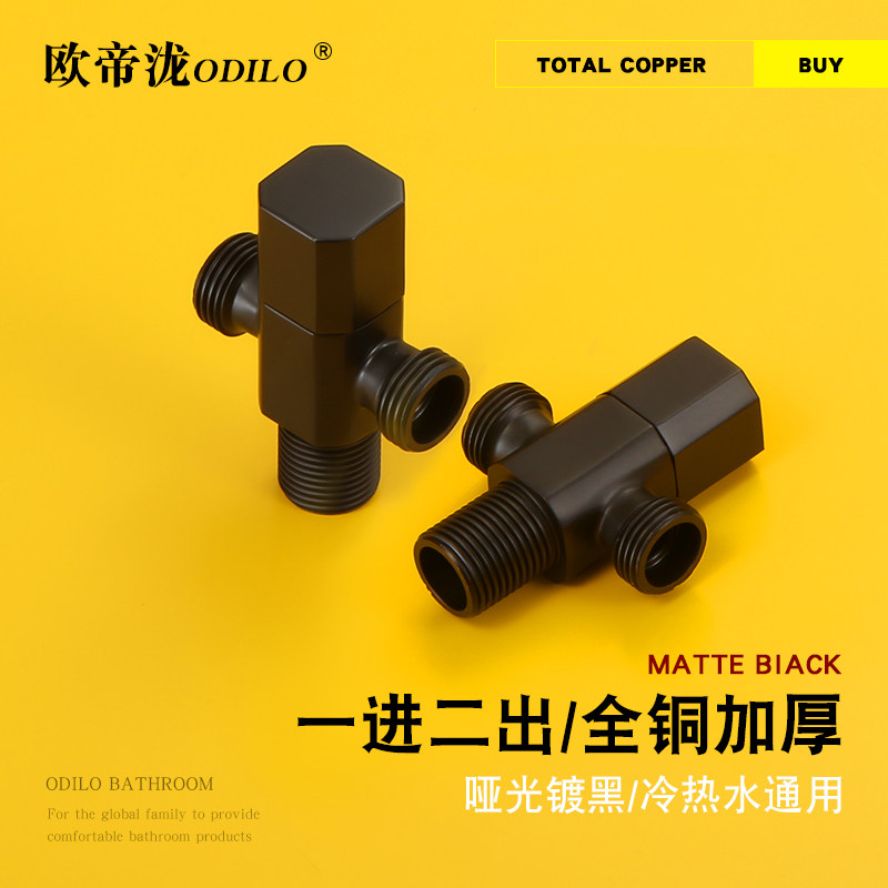 Edutiti full copper thickened in 2-out three-way angle valve hot and cold water universal Eight-word valve double out-of-valve matt black