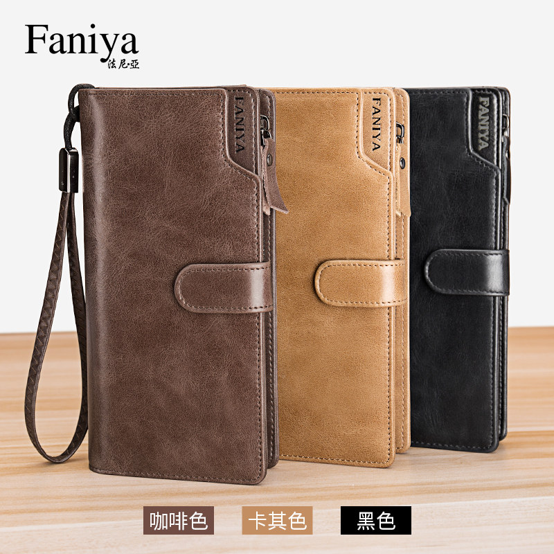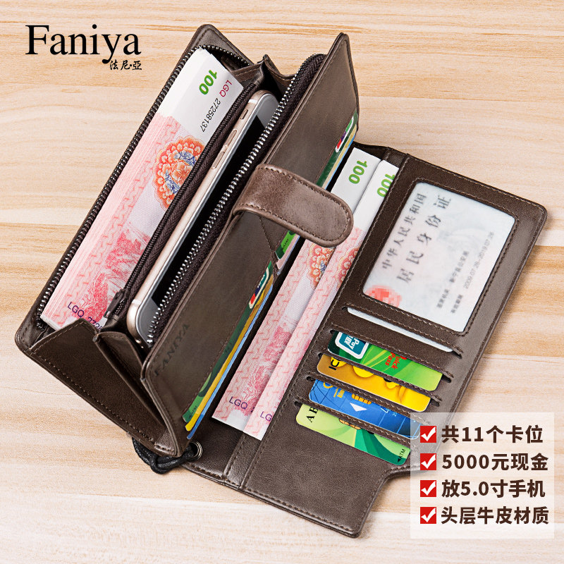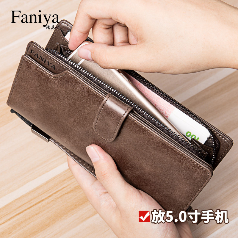 Wallet men's long version zipper leather handbag 2021 new multi-function cowhide card bag one-piece bag men's wallet