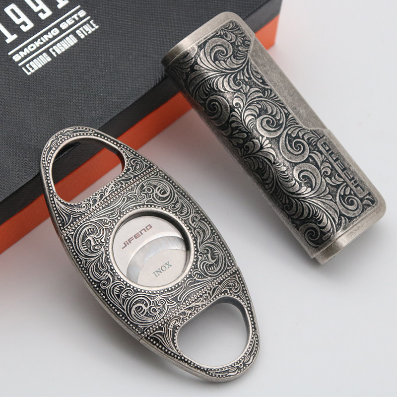 Monsoon cigar lighter cigar cutter set vintage gold stainless steel engraved smoke cutter bronze cigar cutter smoke