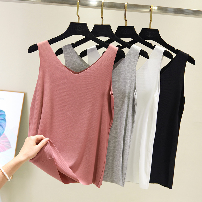 Outer wear modal vest suspenders female summer seamless V-neck inner sleeveless loose bottoming shirt large size thin top