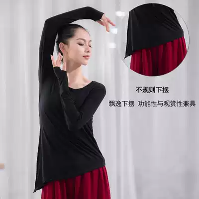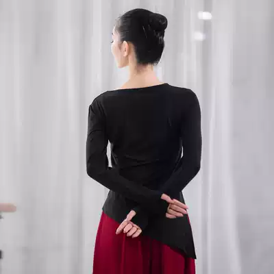 Single apricot modern dance practice suit long-sleeved dance top women's long-sleeved finger body training suit loose adult yoga