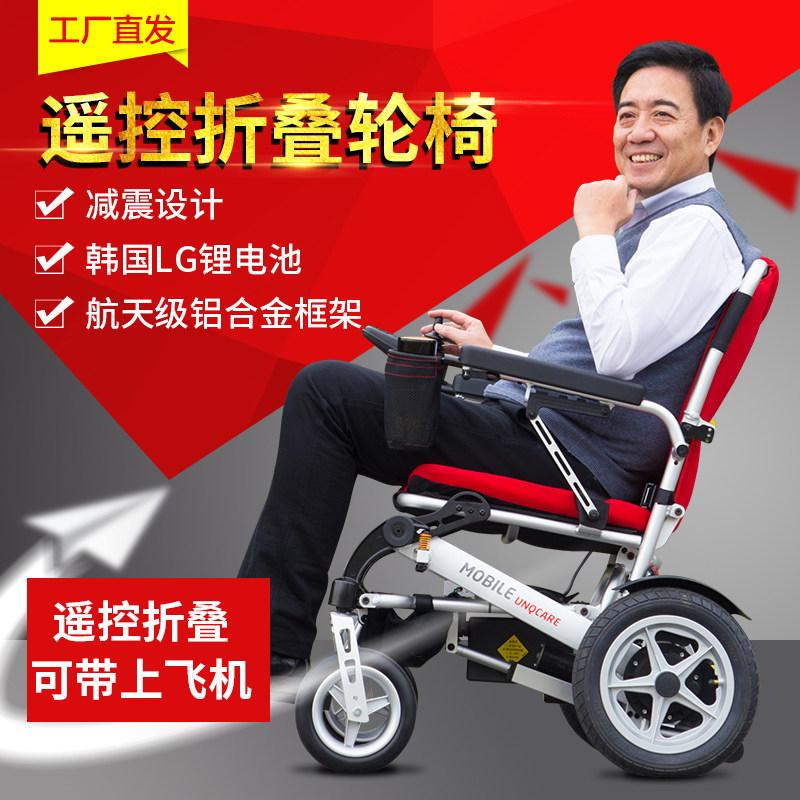 Smart Light Aluminum Alloy Remote Control Folding Folding Lithium electric wheelchair Persons with physical and mental disabilities Old-age four-wheeled adult scooter available on board