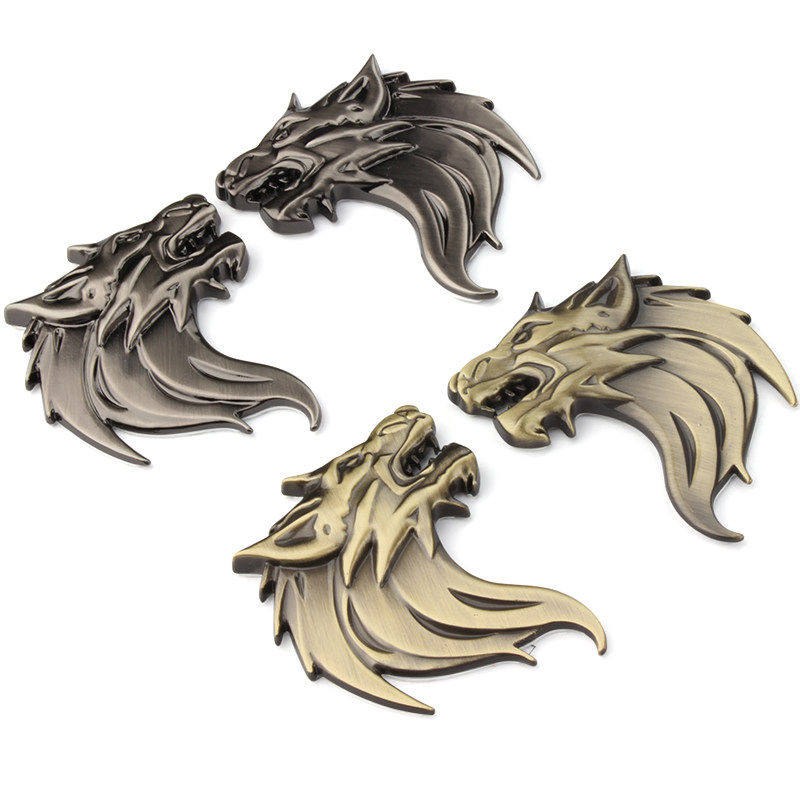 Wolf head stickup bronze color-left wolf head post black-right wolf head post gun color - -1 pair of wolf head stickup silver-right wolverine sticker black-left wolf head stickup antique bronze color -1 to the wolf's head stickup silver-left