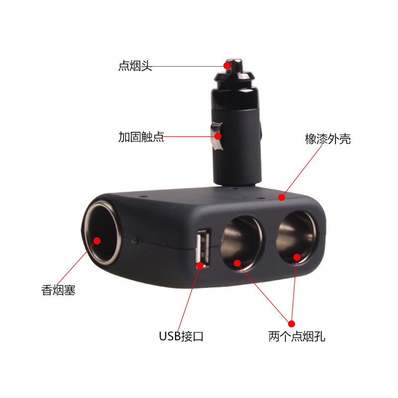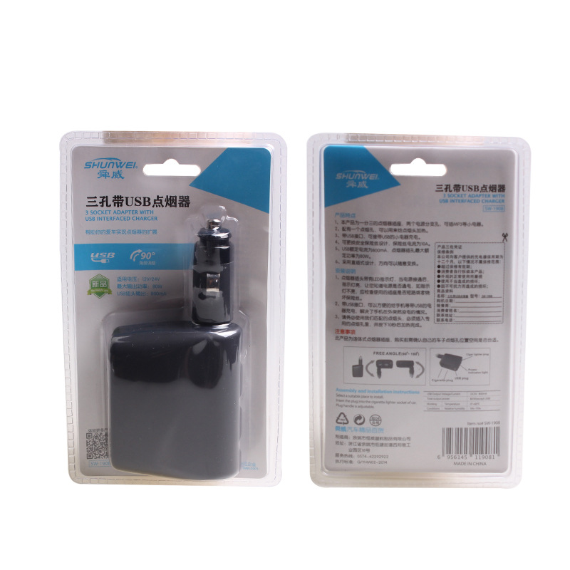 Shunwei One Drag Triple Point Smoking Vehicle Socket Car One Drag Triple Cigarette Lighter Single USB On-board Charger Supplies