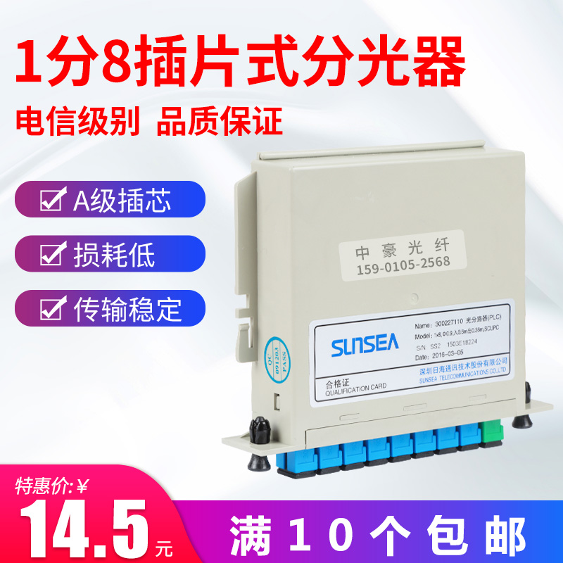 Telecom class 1 minute 8 splitter inserted in 1 minute 8 light splitter PLC Card-type fiber splitter