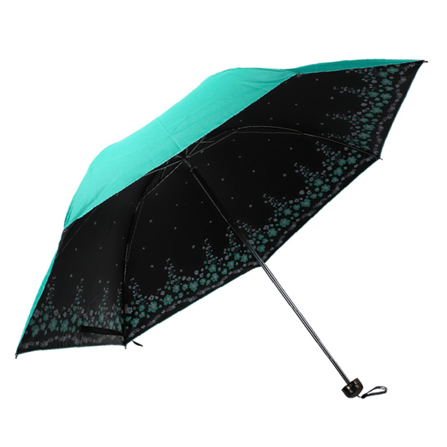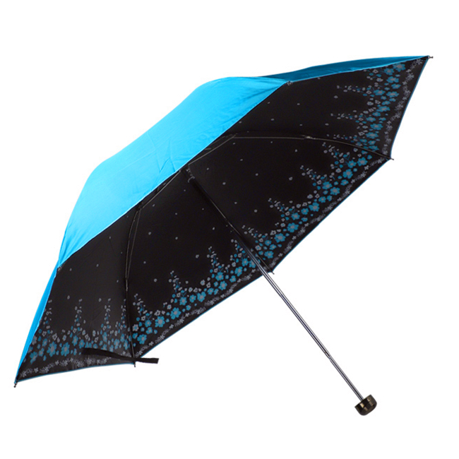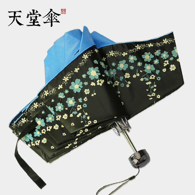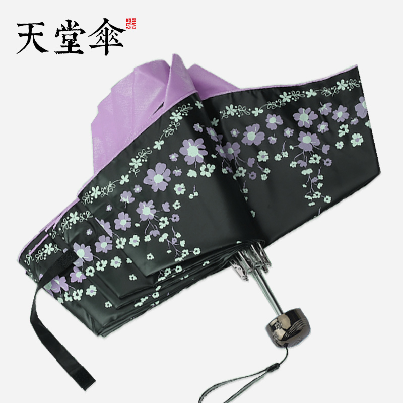 Paradise Umbrella Ultra-Light Rain and Rain Dual-use Folding Umbrella Black Glue Color Glue Sunscreen Anti-UV Three-fold Fashion Korean Version Inner Flower