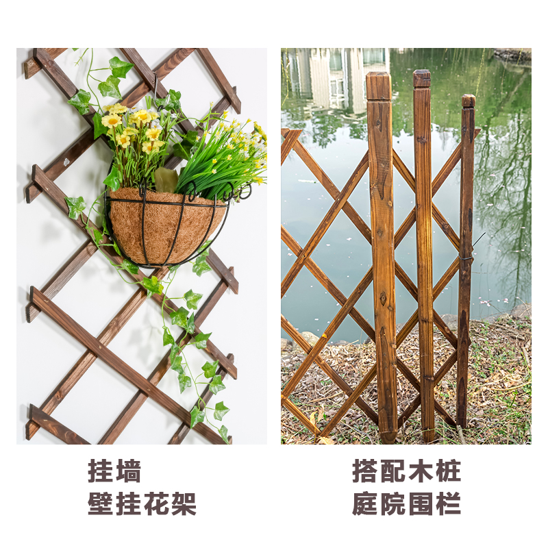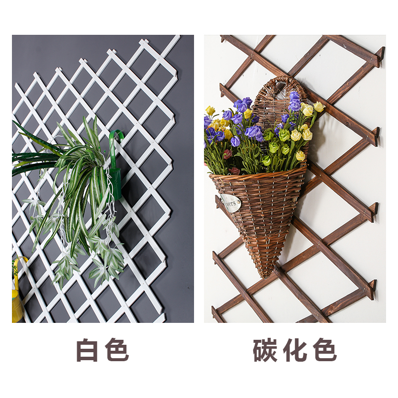 Outdoor telescopic carbonated wood fence Fence Courtyard Garden fence Climbing Rattan shelf Wall Decorative Solid Wood Grid Flower Shelf