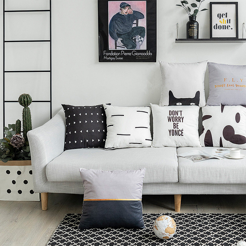 Black and white simple Nordic ins net red pillow flannel pillowcase fabric sofa cushion pillow bedside large backrest