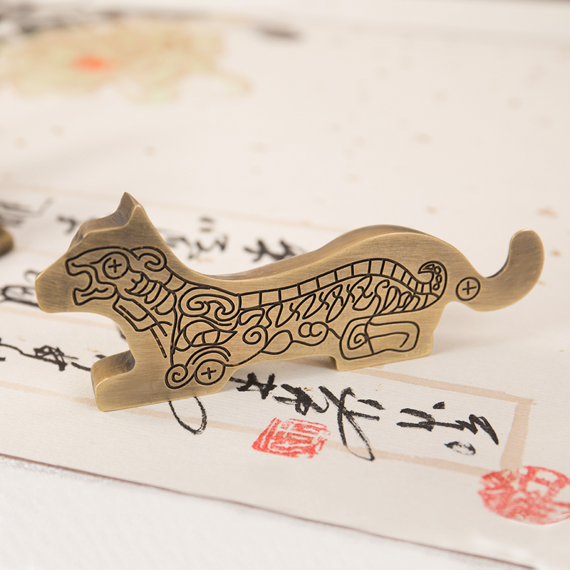 Hufu Zhenruler Town Paper Pen Mountain Brush Holder Pen Shelving room Four Treasure to Play Swinging Piece Metal Retro Brass Town Ruler