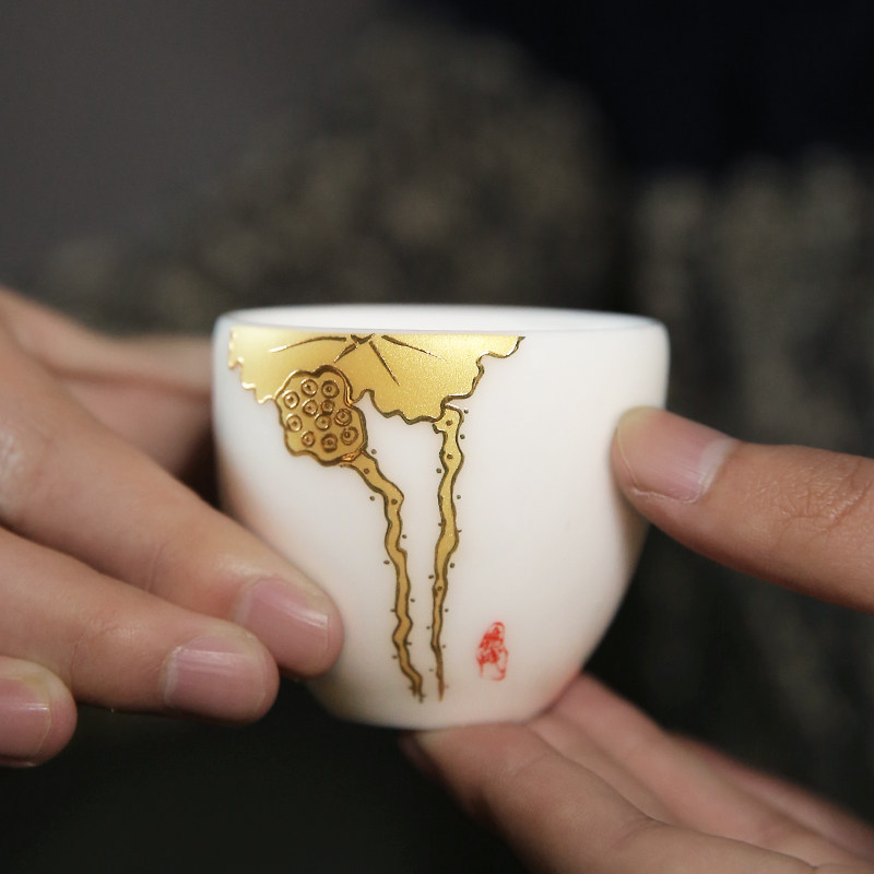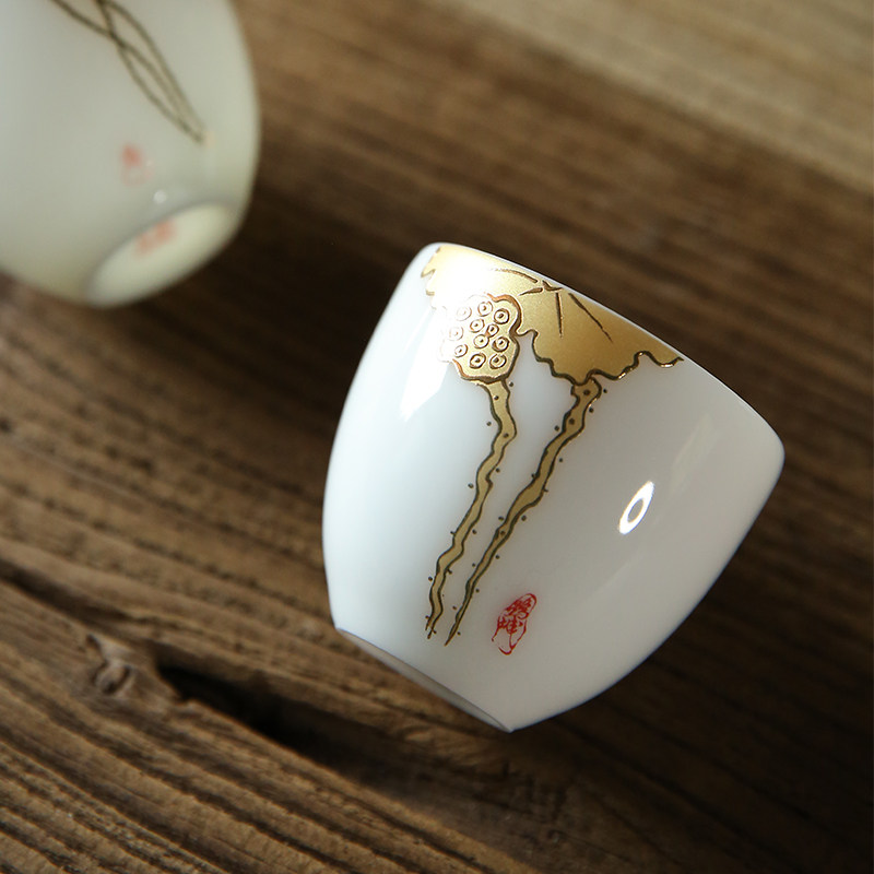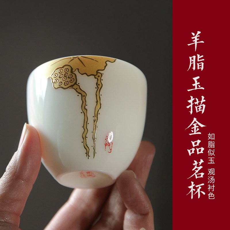 Chamfong Master's Cup Single Cup White Porcelain Handcrafted Sketch Gold Tea Cup Kung Fu Small Tea Cup Tea Cup