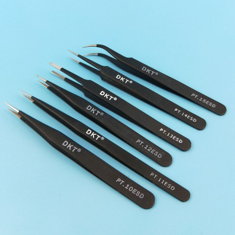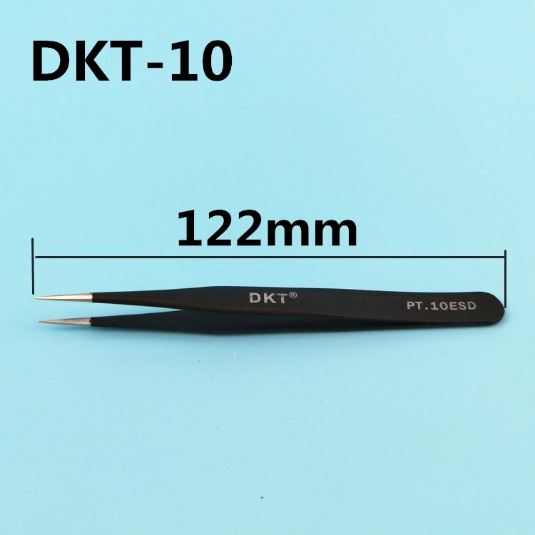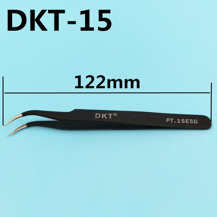 DKT black anti-static tweezers thickened precision elbow round head flat head mobile phone repair stainless steel tweezers