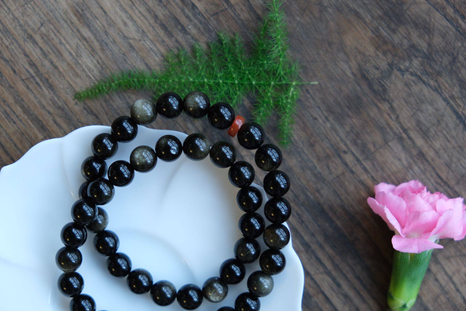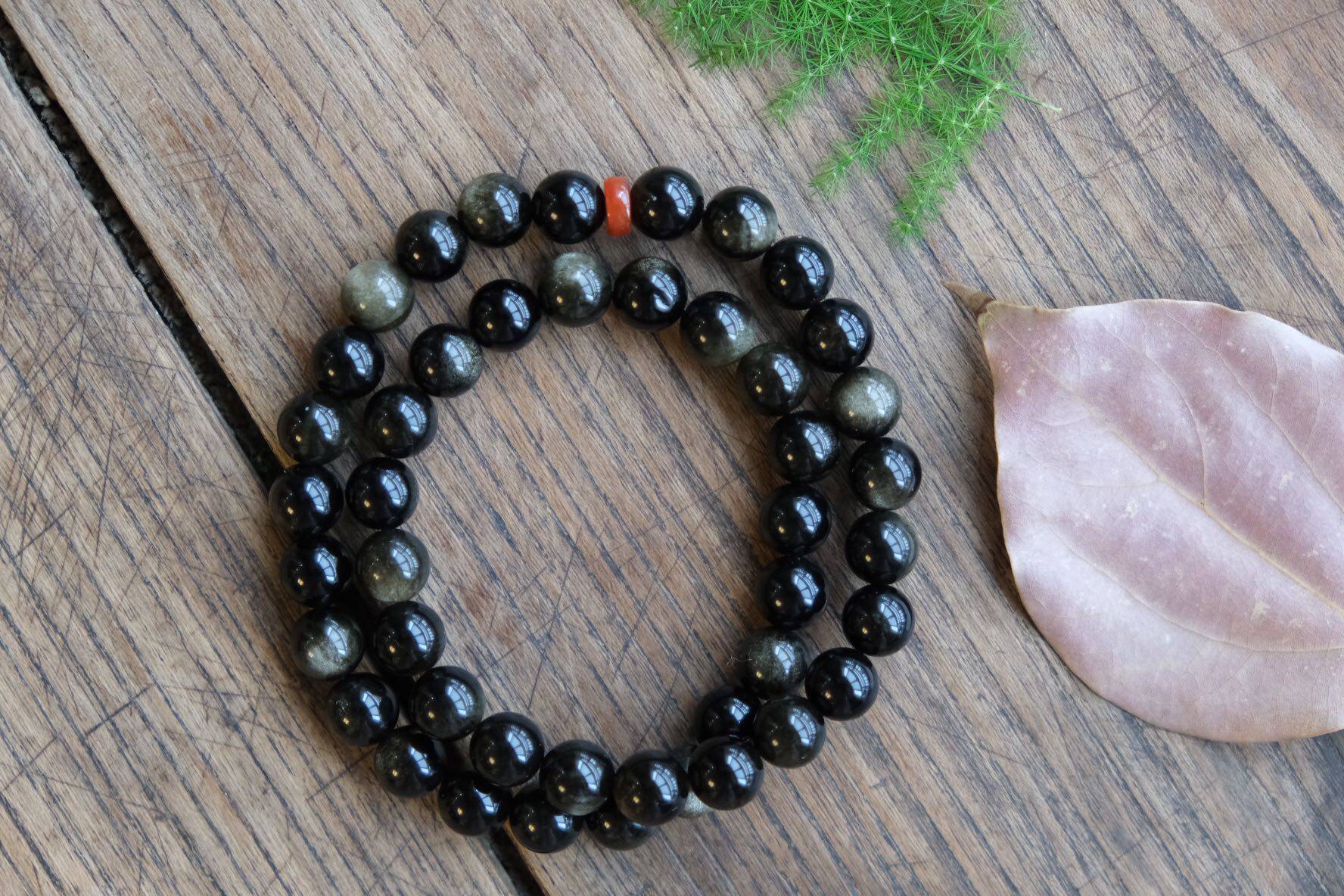 Natural crystal golden sand black dazzling 8mm gold eye double ring hand string septer bead south red