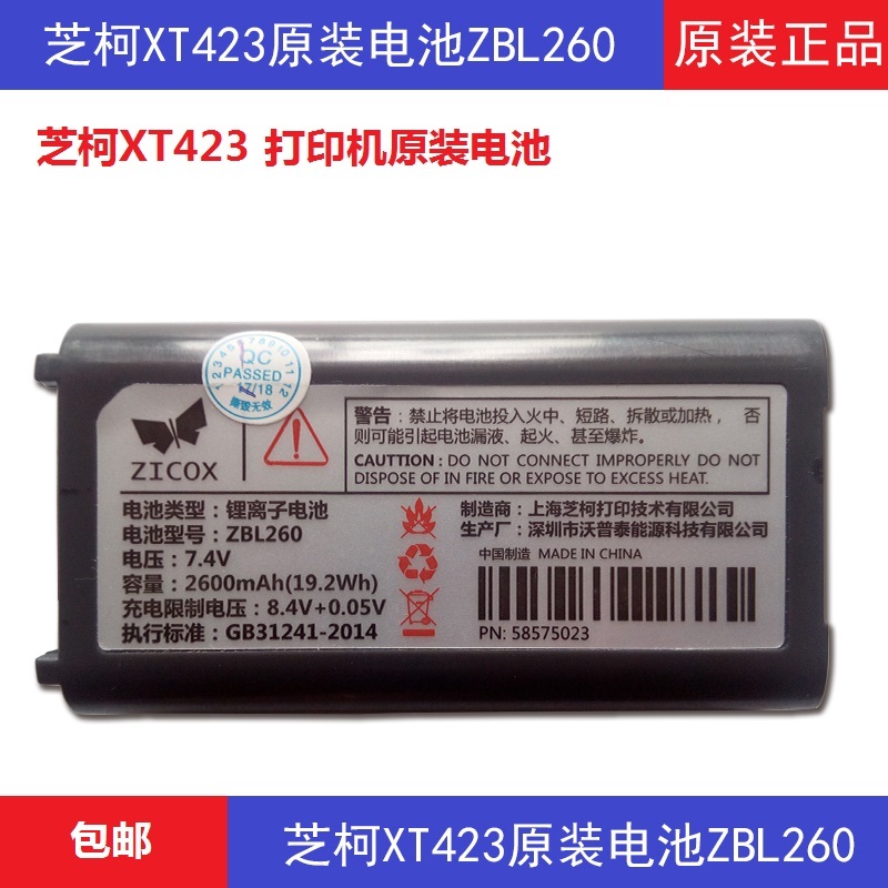 Zhike XT423 portable thermal printer self-adhesive label small ticket printer electronic surface single printer original battery ZBL260 original new lithium-ion battery
