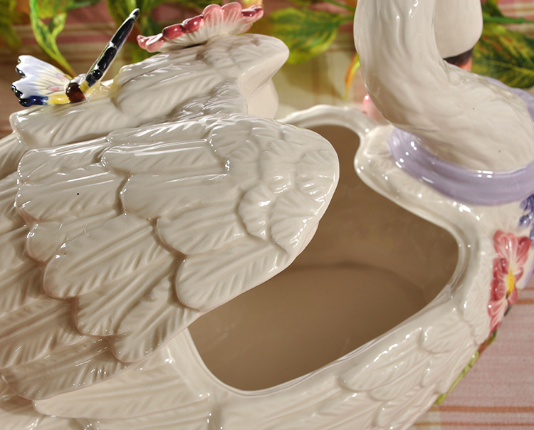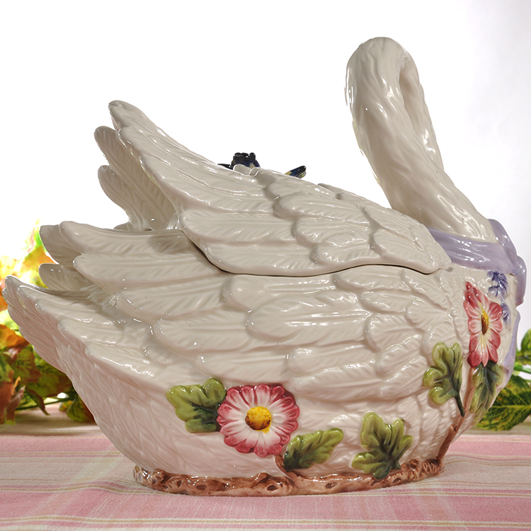 Large size Violet Purple red swan Porcelain Candy Jar SUGAR BOX TEA SPOT JAR COOKIE JAR SNACK JAR STORAGE JAR