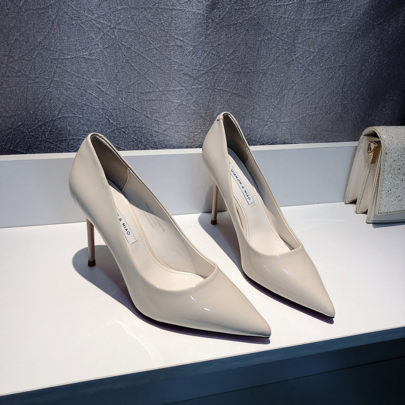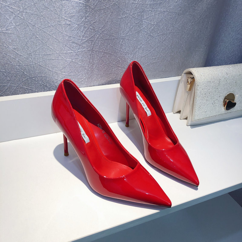 Korean version fashion simple patent leather pointed toe stiletto high heels red yellow single shoes women's work shoes temperament all-match