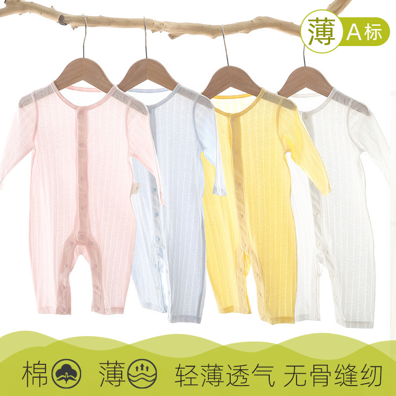 Baby cotton jumpsuit ultra-thin soft baby air-conditioned clothing children's bottoming ha clothes baby climbing long sleeve pajamas