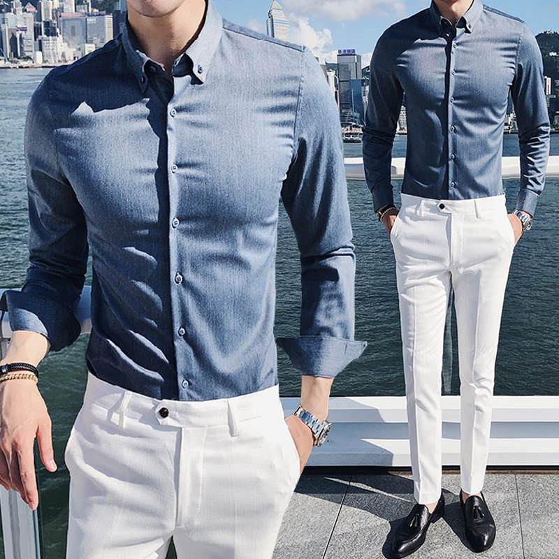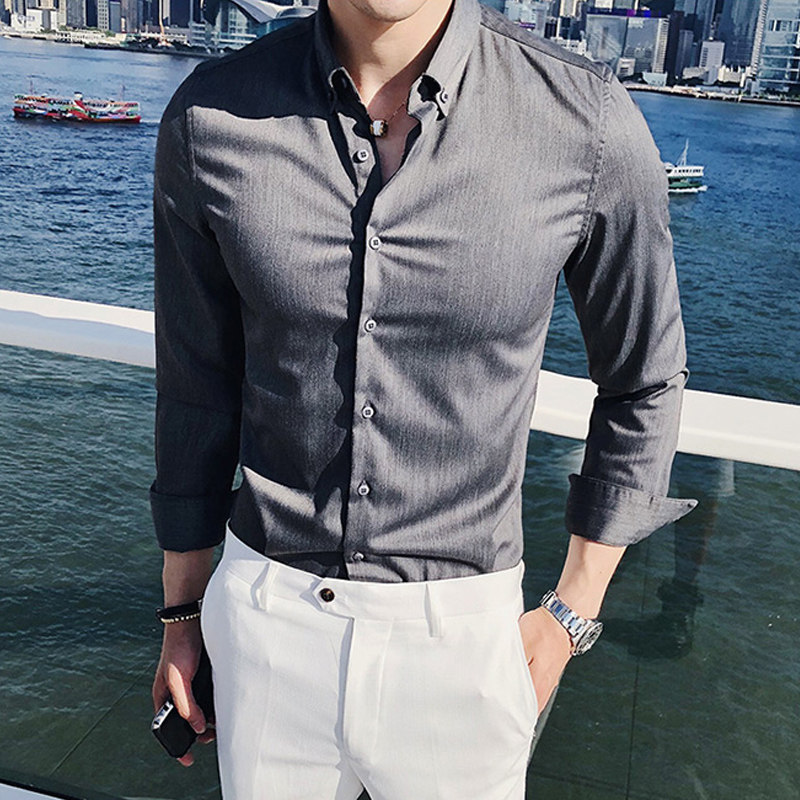 Men's Shirt Long Sleeve Korean Style Slim Trendy Handsome 2022 New Light Luxury Business High-end Casual Dress Shirt