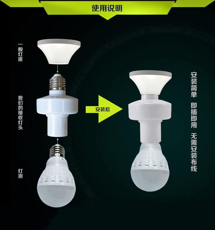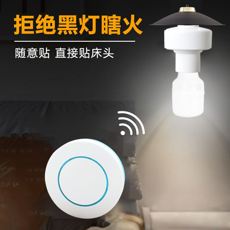 Wireless remote control lamp head E27 screw lip lamp holder 220v smart home switch bedroom LED light round casual sticker