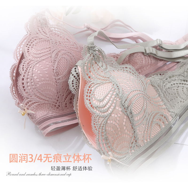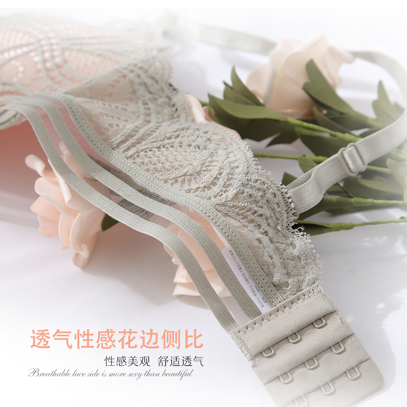 Summer ultra-thin lace underwear women's suit big chest show small gathering No rim sexy beautiful back girl small bra