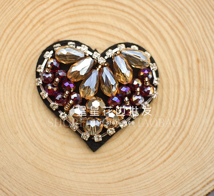 Hand beaded beaded heart-shaped cloth stickers multi-color decorative decals diy accessories clothes bags hats shoes flowers