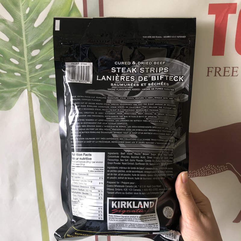 Direct mail Canada Kirkland Steak Strips Orchid Black pepper Beef Dry Thick Cut Skim 340g