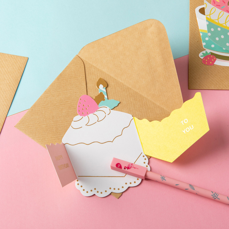 Stereogeneric Greeting Cards Korea Creative Children Cartoon Birthday Blessings Card Thanks Card Message Card Mini Small Card