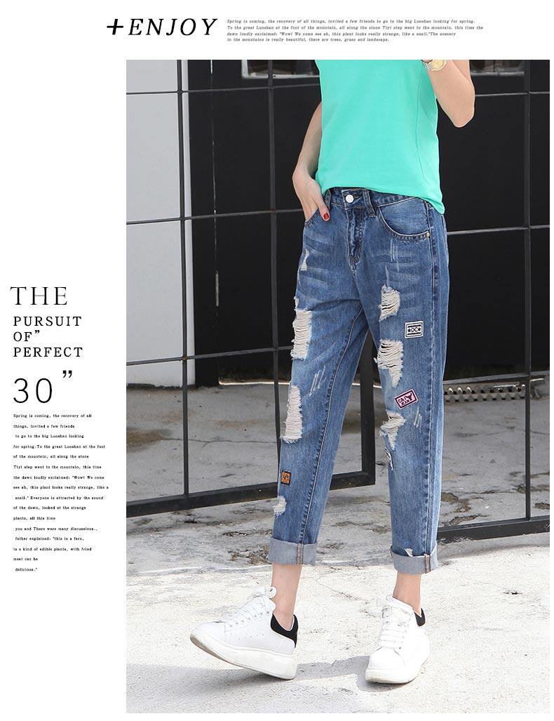 2022 Spring Summer Thin section Jeans Girl's Broken Cave Kharen Pants Bf Wind Loose 90% Women Pants Straight Barrel Beggar 9 Sub-pants