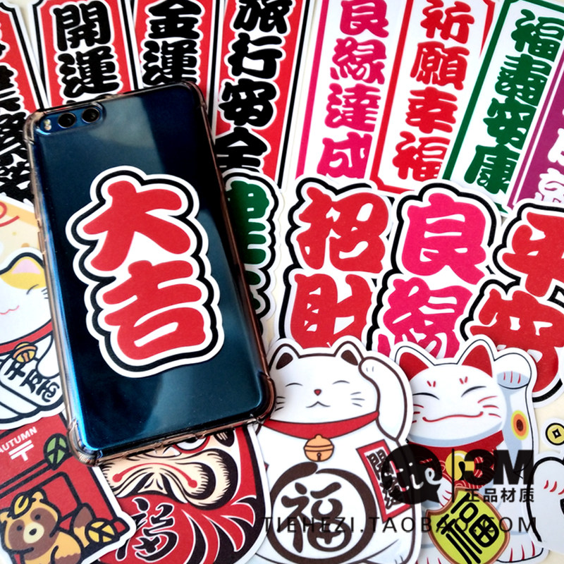 23 Japanese-style lucky blessing suit Apple mobile phone laptop suitcase 3M waterproof seamless sticker