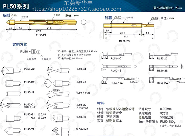Lengthened 50mil probe PL50-A recessed head cup head test needle thimble 0 68 68 length 28MM spring needle