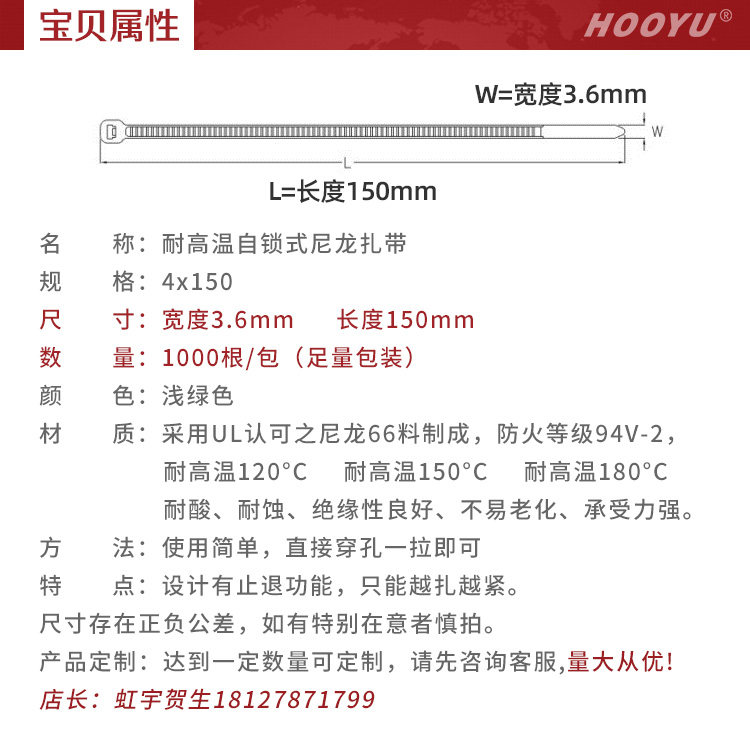 Nylon cable tie Light green 4*150mm high temperature 120 degrees 180 degrees bundled high quality cable tie 1000 packs