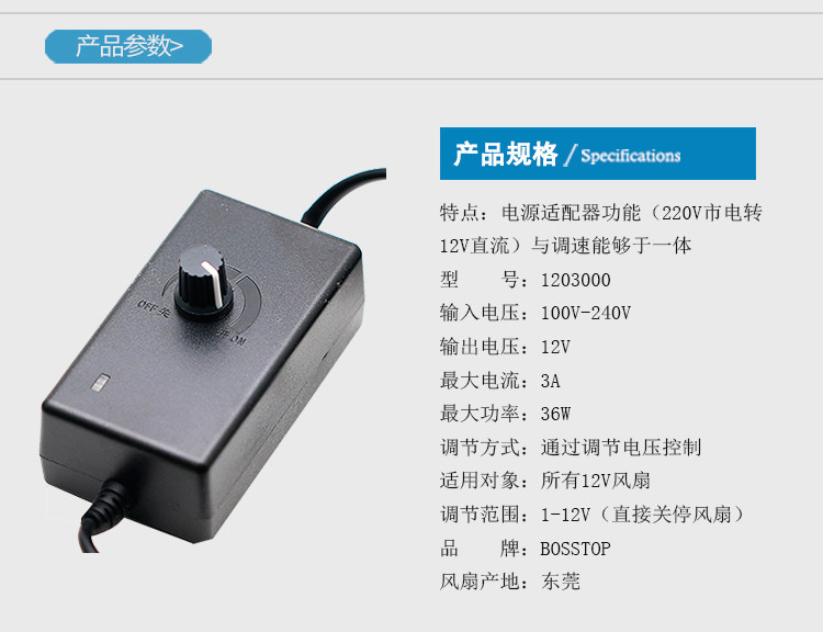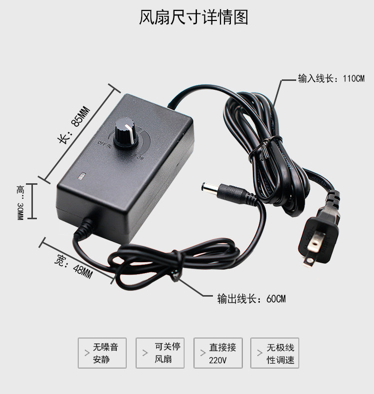 Adjustable speed power adapter 3A high current fan Universal DC regulator stepless speed regulation 220V to 12V
