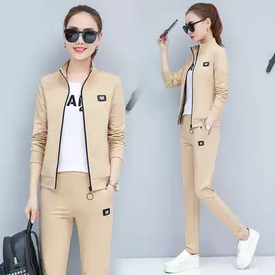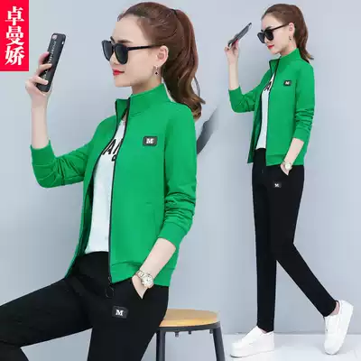 Sportswear set women's 2020 Spring and Autumn new large size stand collar Slim Loose Lady casual thick cotton three-piece set