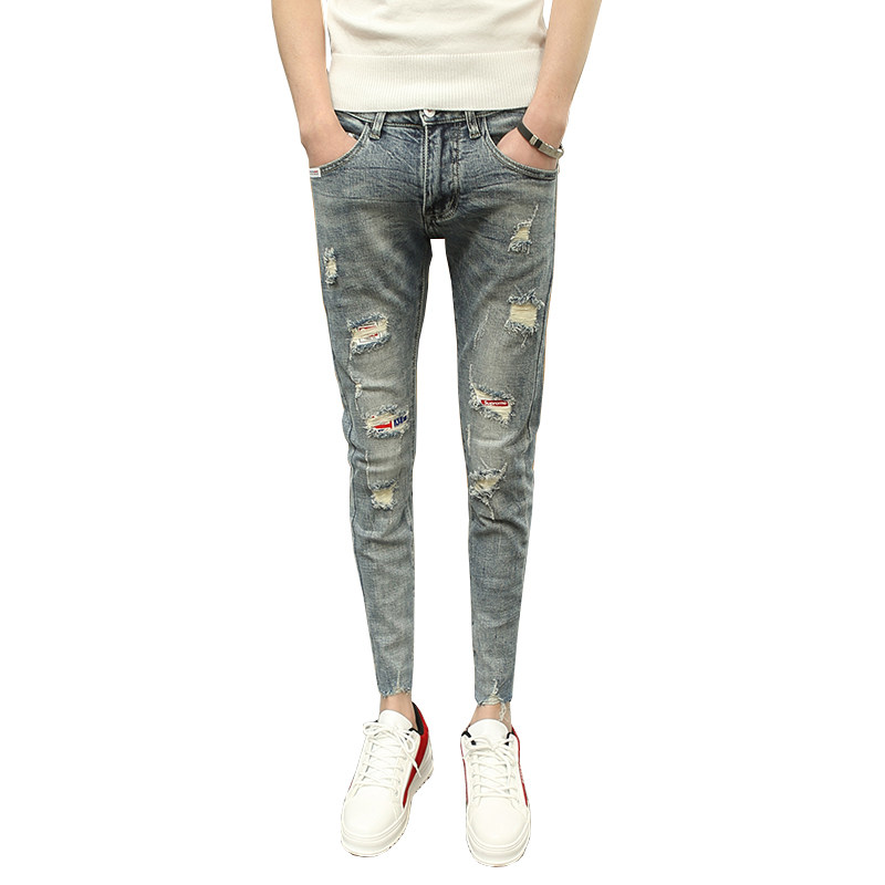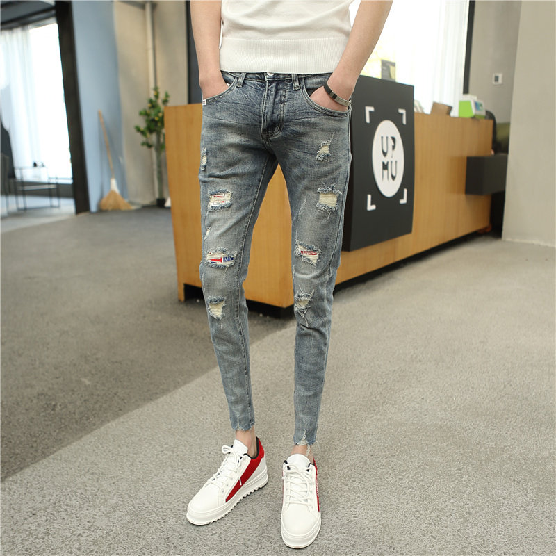 Slim fit jeans Men's summer 90% Elastic Breaking Hole beggars 2023 New Korean version of a young pair of young leggings