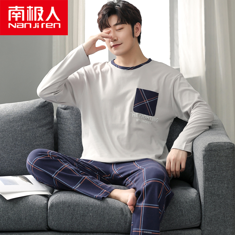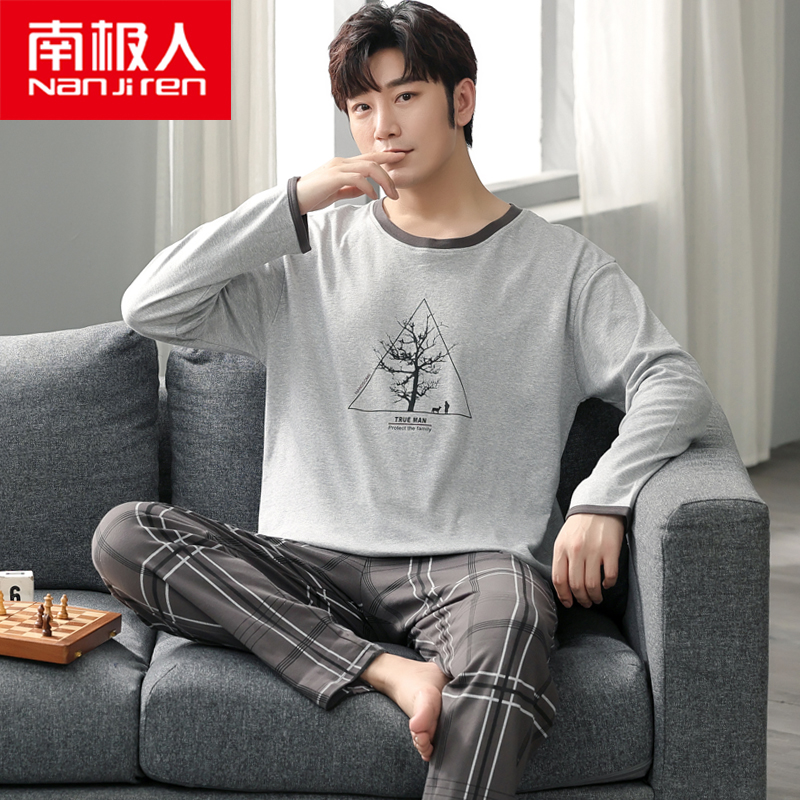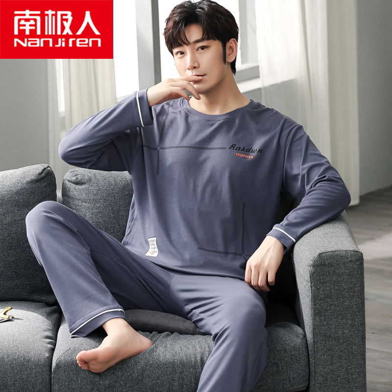 South Pole men's men's sleepwear spring autumn pure cotton long sleeve suit 2022 New autumn and winter thin models can be worn outside the home clothes