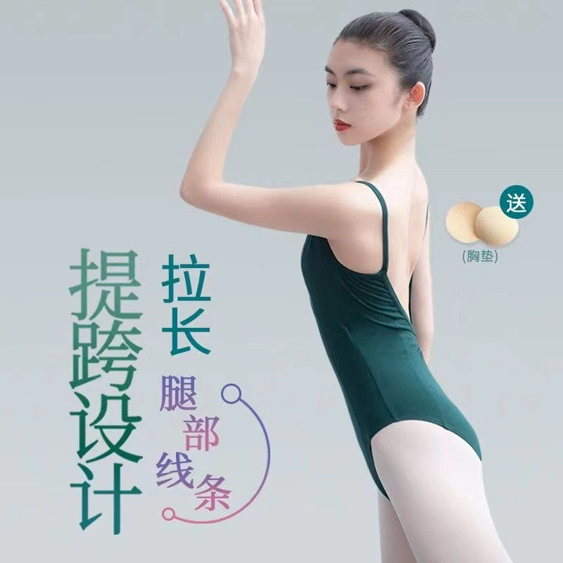 French Sansha Adult ballet Gongfu Cotton Double V Dew Back High hip straps Even body corkbody Dance suit Female