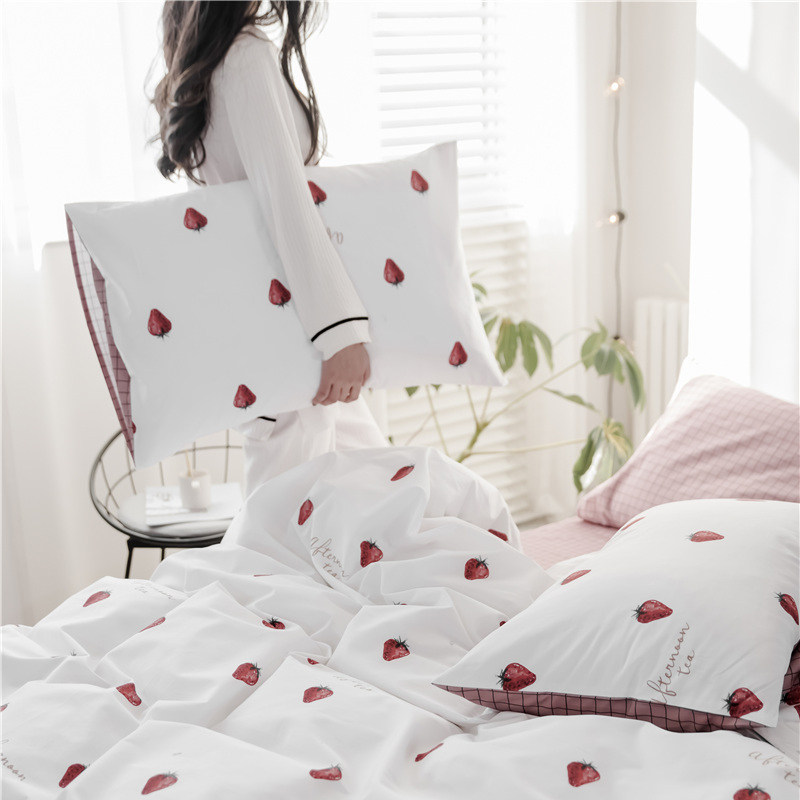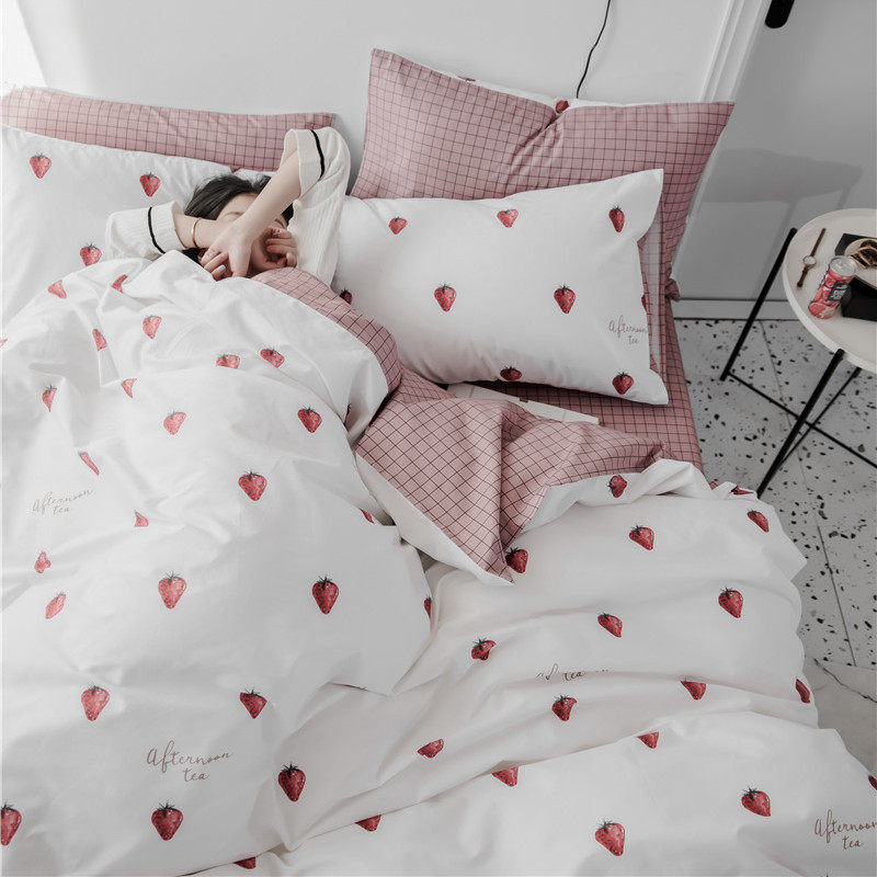 Net red ins The same Princess style pure cotton four-piece cotton bedding spring and autumn single quilt cover three-piece set