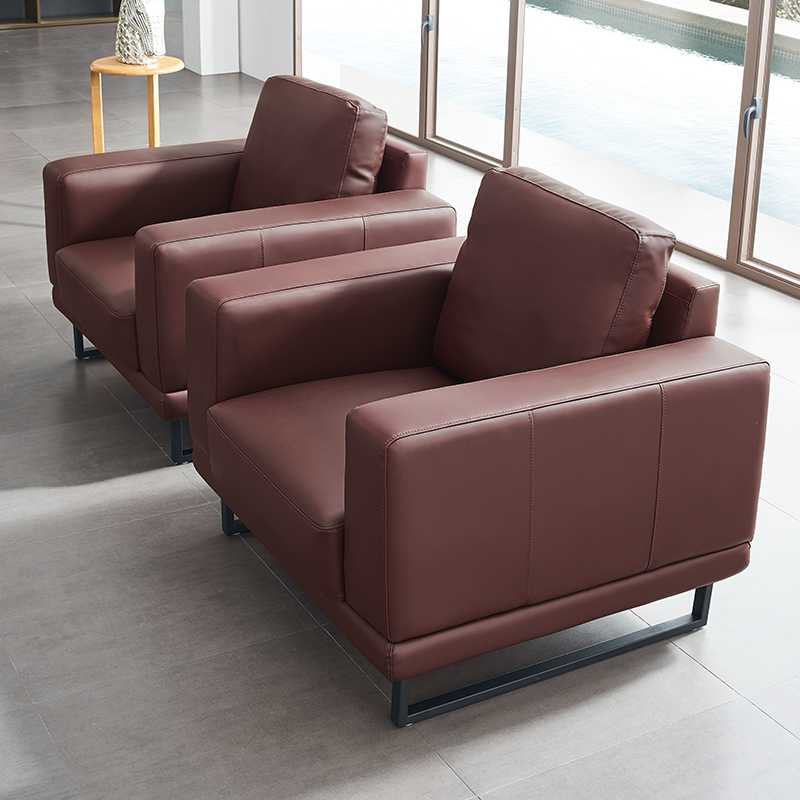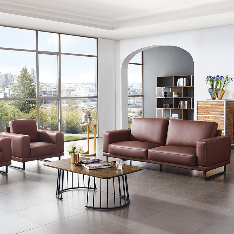 Industrial Wind Brown Western Leather Sofa Solid Wood Frame Trio Bits Sample House Display Center Owner's Office Meeting Negotiate Furniture