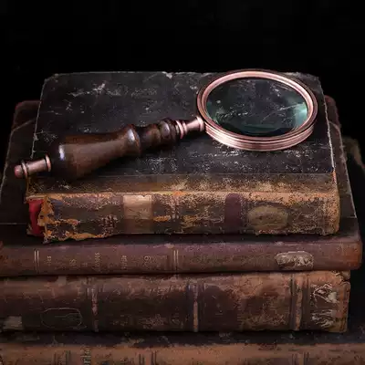 Retro old hand-held solid wood handle magnifying glass model room soft decoration decoration jewelry photography photo props