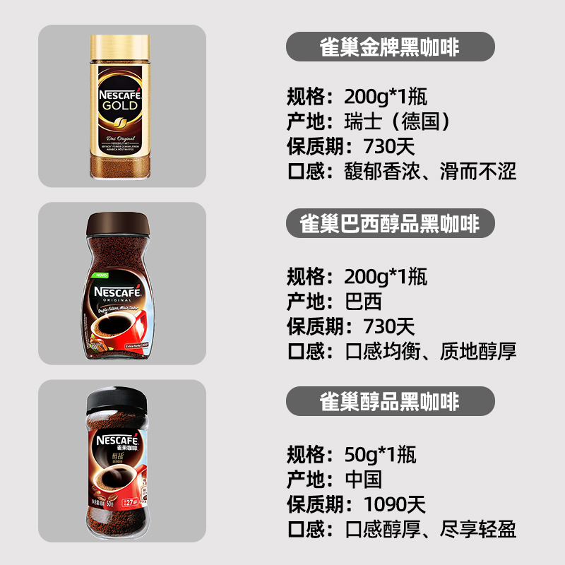 Swiss Imported Nestle Gold Black Coffee Freeze-dried Instant Pure Coffee Powder No Sugar Packs 200g * 1 bottled