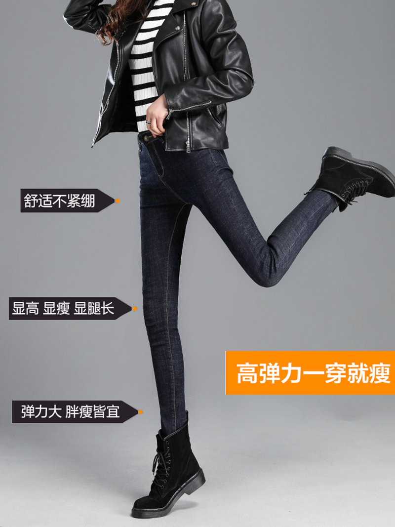 In spring and fall 2021, new black tight - foot jeans are high and thin - fixed elastic pencil pants