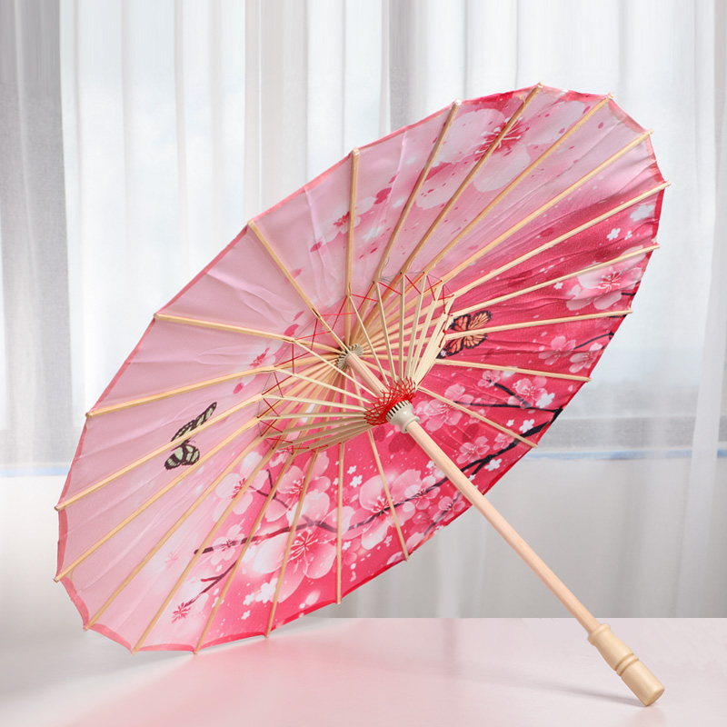 Performance Umbrella Classical Pink Peach Blossom Umbrella Blue and White Silk Umbrella Hanfu Female Photography Props Decorative Umbrella Dance Umbrella