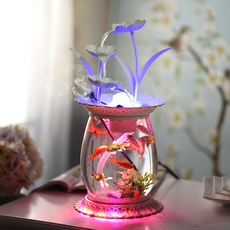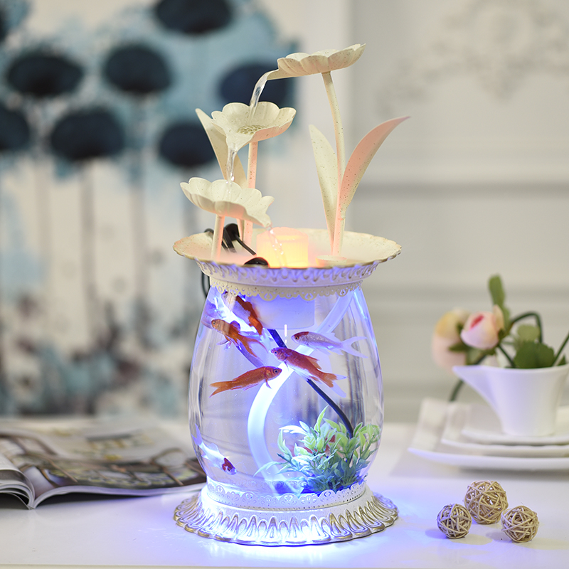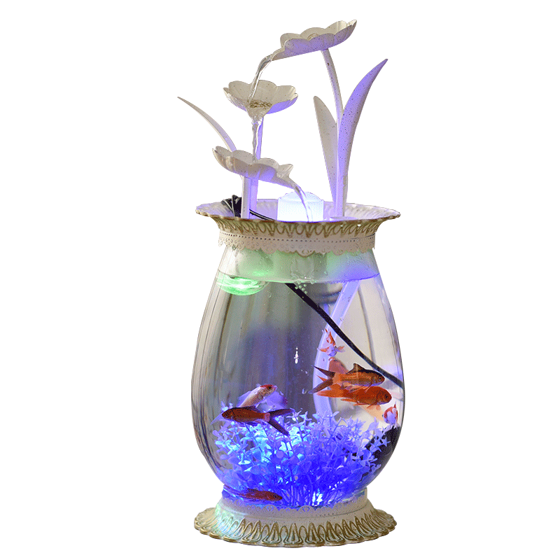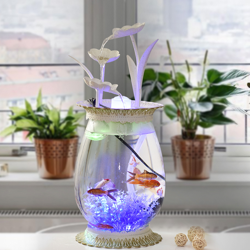 Ultra White Glass Aquarium Small Fish Tank Building Living Room Home Mini Table Guest Grass Cylinder Round Gold Fish Tank