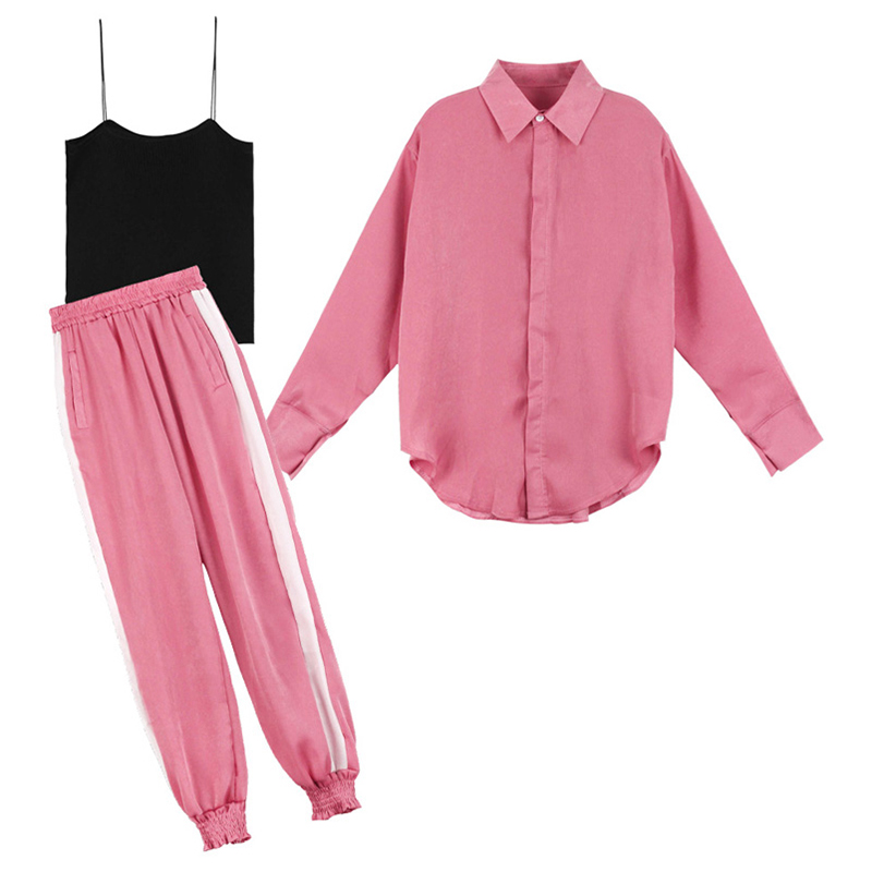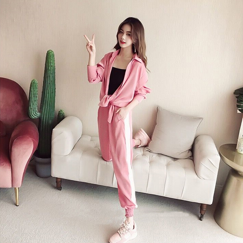 Casual sports suit female spring and autumn 2019 new fashion trend Korean version loose running two-piece suit foreign style pink