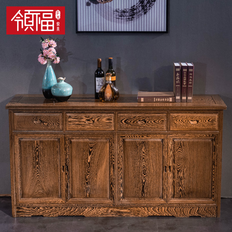 Lingfu mahogany furniture living room Chinese style solid wood four-drawing sideboard combination chicken wing wood tea cabinet locker