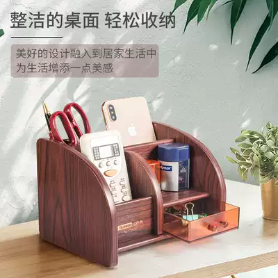 Wooden multifunctional pen holder unit company desk creative simple modern exquisite pen holder desktop ornaments storage box high-grade solid wood small pen bucket business card office large capacity pen holder cute