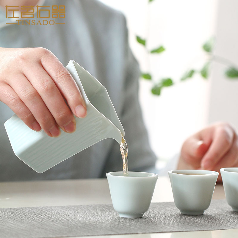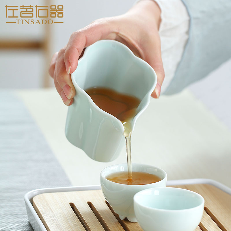 Left Tea Right Instrumental Blue Porcelain High-end Fair Cup Tea Leaking Day Powder Green Male Cup Ceramic Sub Tea Instrumental Kongfu Tea Furniture