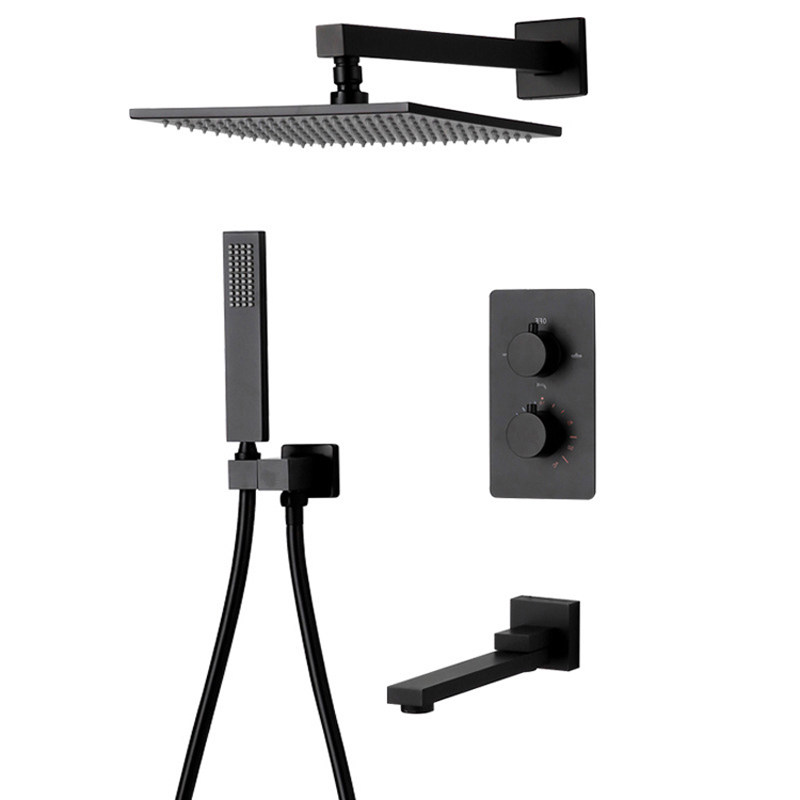 The hotel engineering black dark shower suite square mounted into wall 3 functional valve body black tap