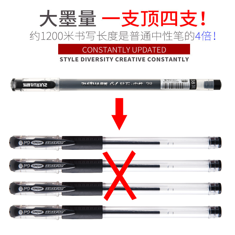 Large-capacity gel pen all-in-one full needle tube 0 38 student water-based pen gel pen 0 5 business office black red blue