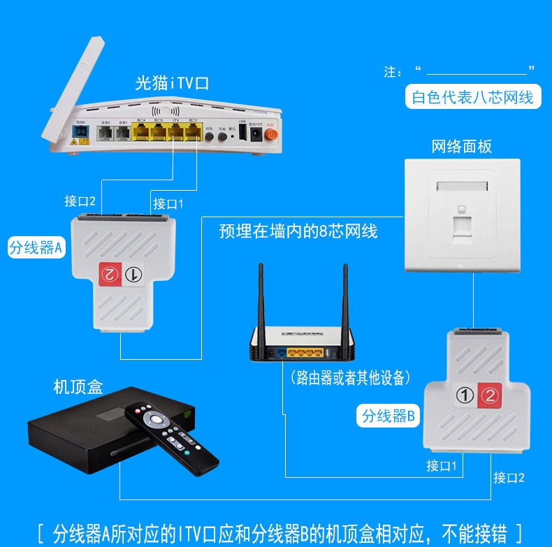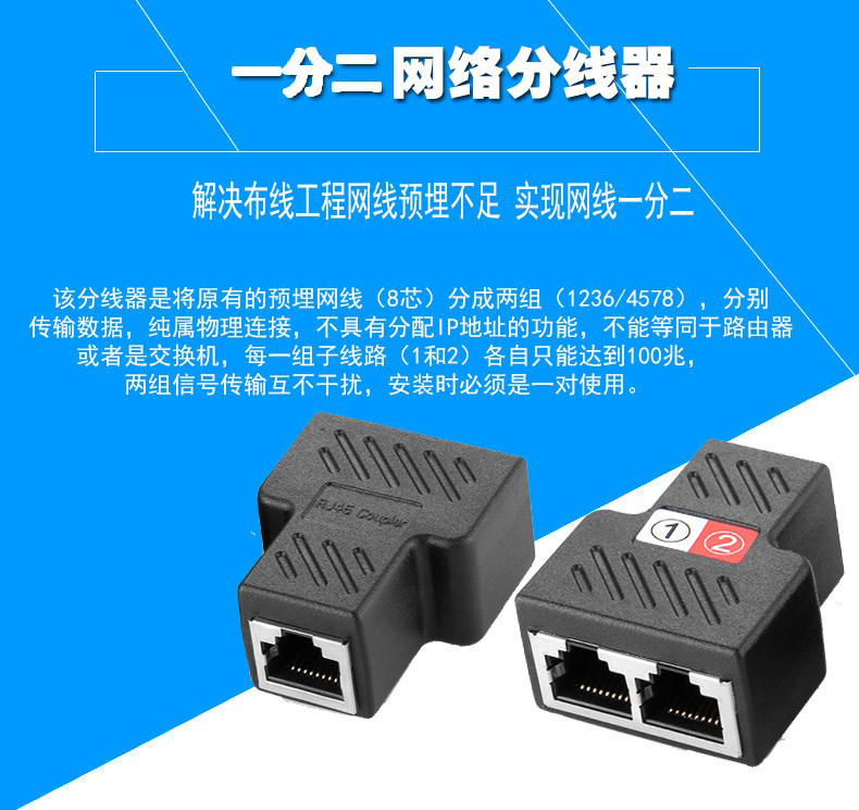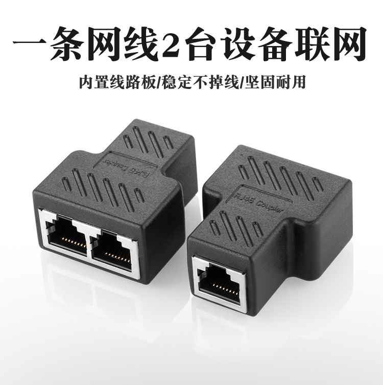 At the same time, the Internet network cable splitter is one minute two connectors tee head iptv broadband RJ45 network adapter